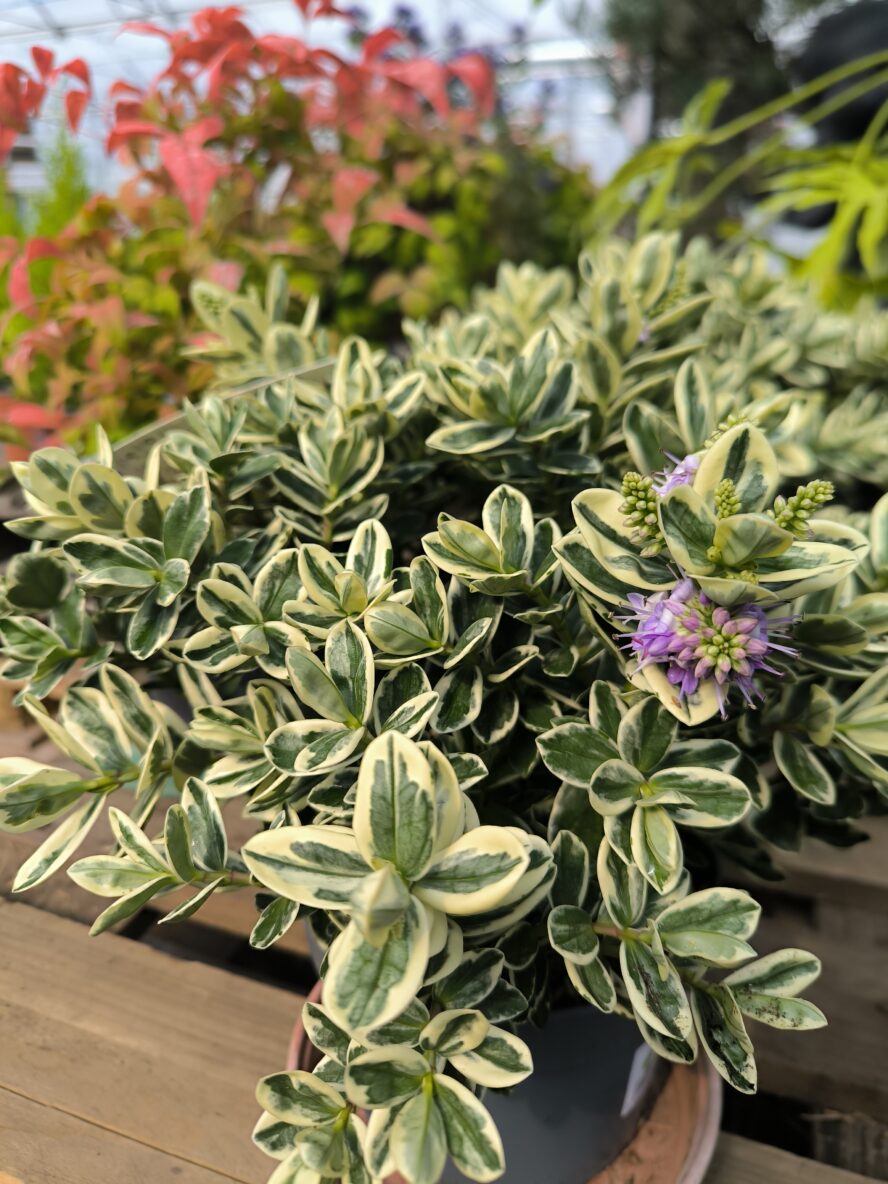 Véronique panaché très lumineux avec une floraison bleu de juillet à décembre.